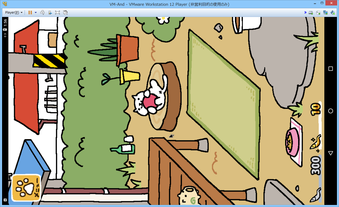 ゲームだが、「ねこあつめ」は縦画面のゲームをすると画面表示が90度回転してしまうため楽しむのはちょっと厳しい。