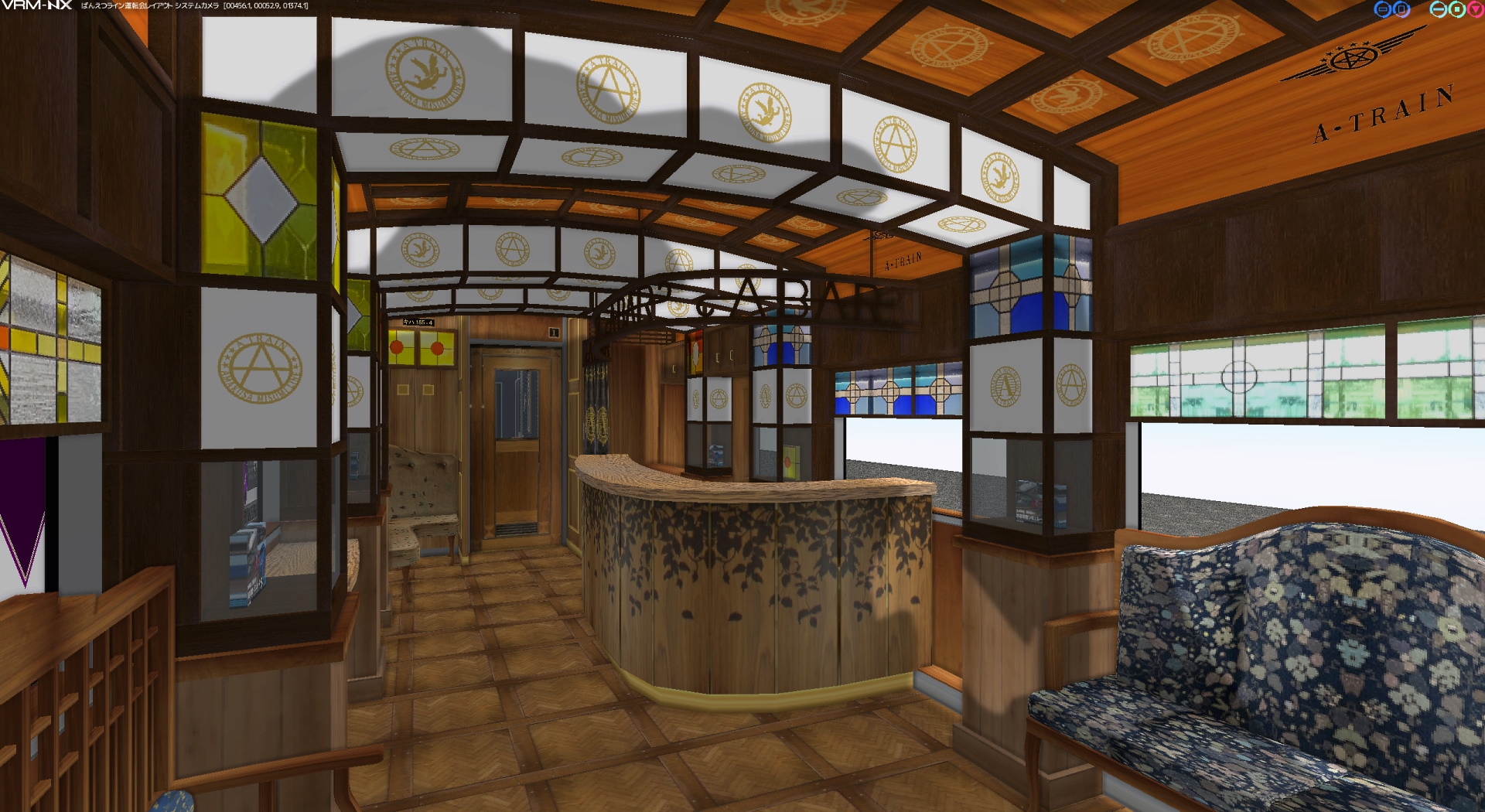 A列車で行こう」は外装も勿論のこと、内装の模様やステンドグラスまで細部までこだわって作成されており、鉄道模型シミュレーターでも高画質テクスチャを別読み込みすればここまで精巧に表現できるのか、と驚きました。